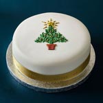£46.25Almost too pretty to eat, this soft iced Christmas cake with a marzipan layer is hand-piped with a charming festive tree design in delicate green, gold and red royal icing.